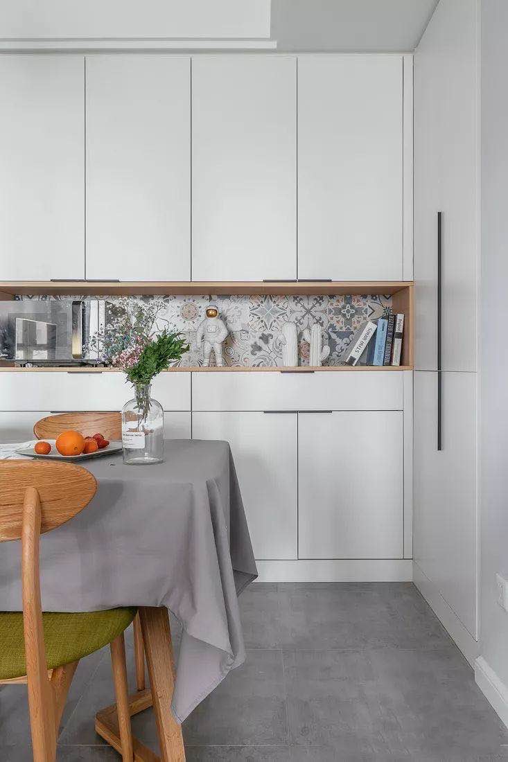 柜子不用太大,但是一定要有。” 在餐廳墻上裝了排吊柜 ,1年多來(lái)餐桌沒有亂堆過(guò)東西,任何時(shí)候都整整齊齊。