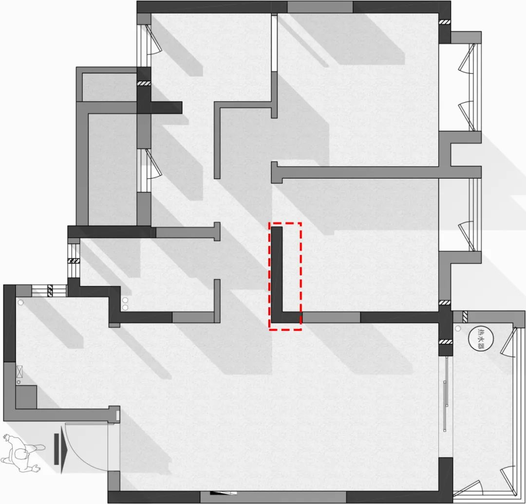 1、毛坯房:戶型改造需要拆的墻體。