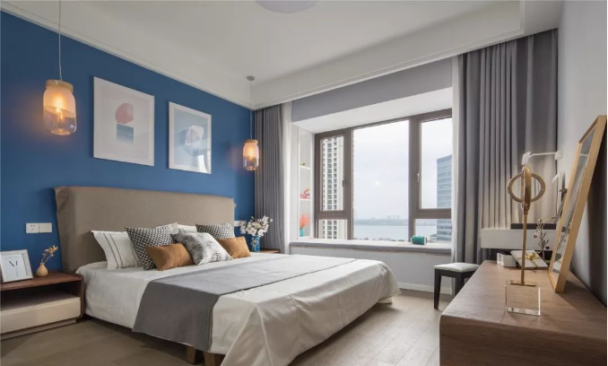 臥室飄窗是一個很好的休閑之處,因為有大面積的玻璃,視野很好,采光也很好,可以在這里靜看窗外風景,曬太陽休閑都是不錯的選擇。