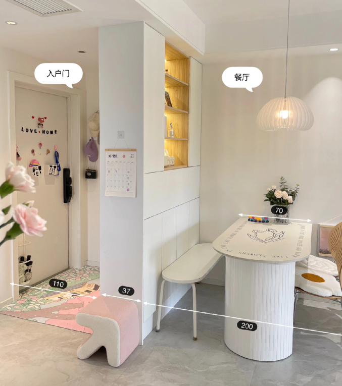 矮柜+隔斷設(shè)計(jì):通過(guò)矮柜和玻璃隔斷的組合,既保持了空間的通透性,又避免了開(kāi)門(mén)見(jiàn)廳的尷尬。