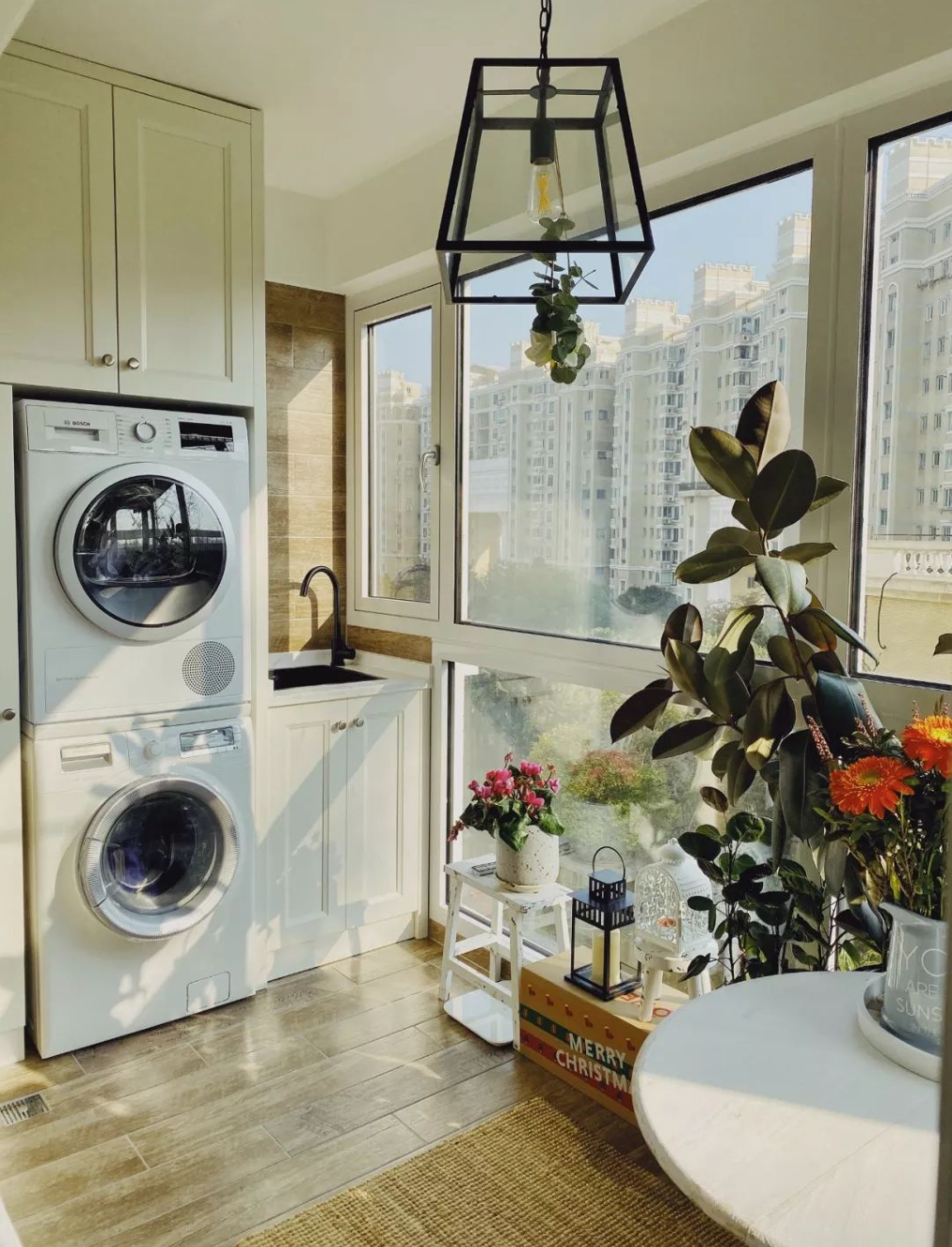 另一側則作為晾曬區,采用隱形晾衣繩或側裝晾衣架,既解決了晾曬需求,又保持了整體的整潔與美觀。
